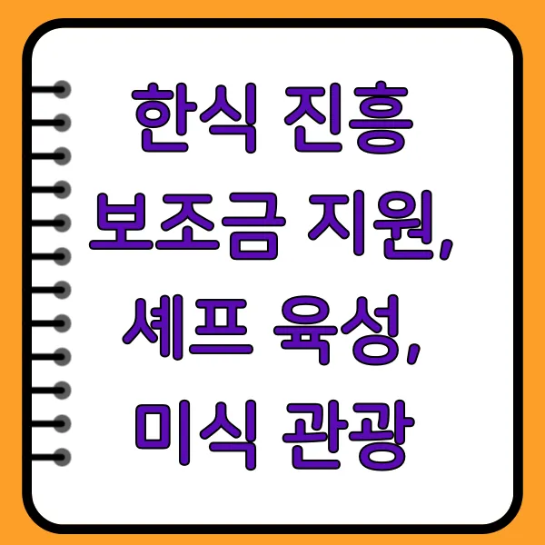 한식, 세계를 향한 날갯짓: 한식 진흥 보조금, 셰프 육성, 그리고 미식 관광의 융합적 발전 전략대한민국의 자랑스러운 문화유산이자, 세계인의 입맛을 사로잡는 한식! 그 무한한 가능성을 현실로 만들기 위한 정부의 노력이 뜨겁습니다. 한식의 가치를 높이고 세계 미식 트렌드를 주도하기 위한 한식 진흥 보조금 지원, 셰프 육성, 그리고 미식 관광 활성화 정책을 집중적으로 살펴보겠습니다.한식, 문화적 가치를 넘어 세계인의 입맛을 사로잡다한식진흥법, 한식의 새로운 도약을 위한 발판2025년, 한식진흥법을 기반으로 한 한식 진흥 정책은 단순한 음식 지원을 넘어, 한식 산업의 혁신과 성장을 목표로 합니다. 농림축산식품부는 한식의 품질 향상, 전문 인력 양성, 해외 진출 지원 등 다각적인 사업을 추진하며 한식의 세계화를..