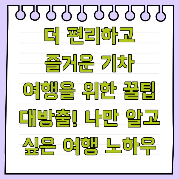 자, 이제 철도운임 할인 혜택을 받아 기차 여행을 떠날 준비가 되었나요? 더욱 편리하고 즐거운 여행을 위한 몇 가지 꿀팁을 알려드리겠습니다. 이 꿀팁들만 알고 있다면 기차 여행이 더욱 특별한 추억으로 가득 차게 될 거예요!