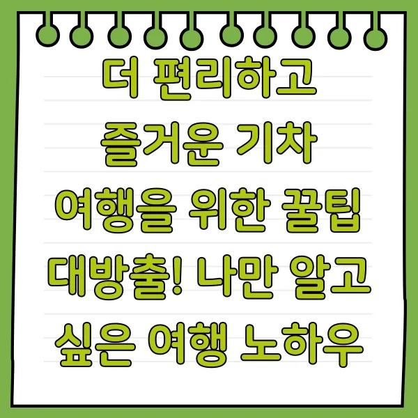 자, 이제 철도운임 할인 혜택을 받아 기차 여행을 떠날 준비가 되었나요? 더욱 편리하고 즐거운 여행을 위한 몇 가지 꿀팁을 알려드리겠습니다. 이 꿀팁들만 알고 있다면 기차 여행이 더욱 특별한 추억으로 가득 차게 될 거예요!